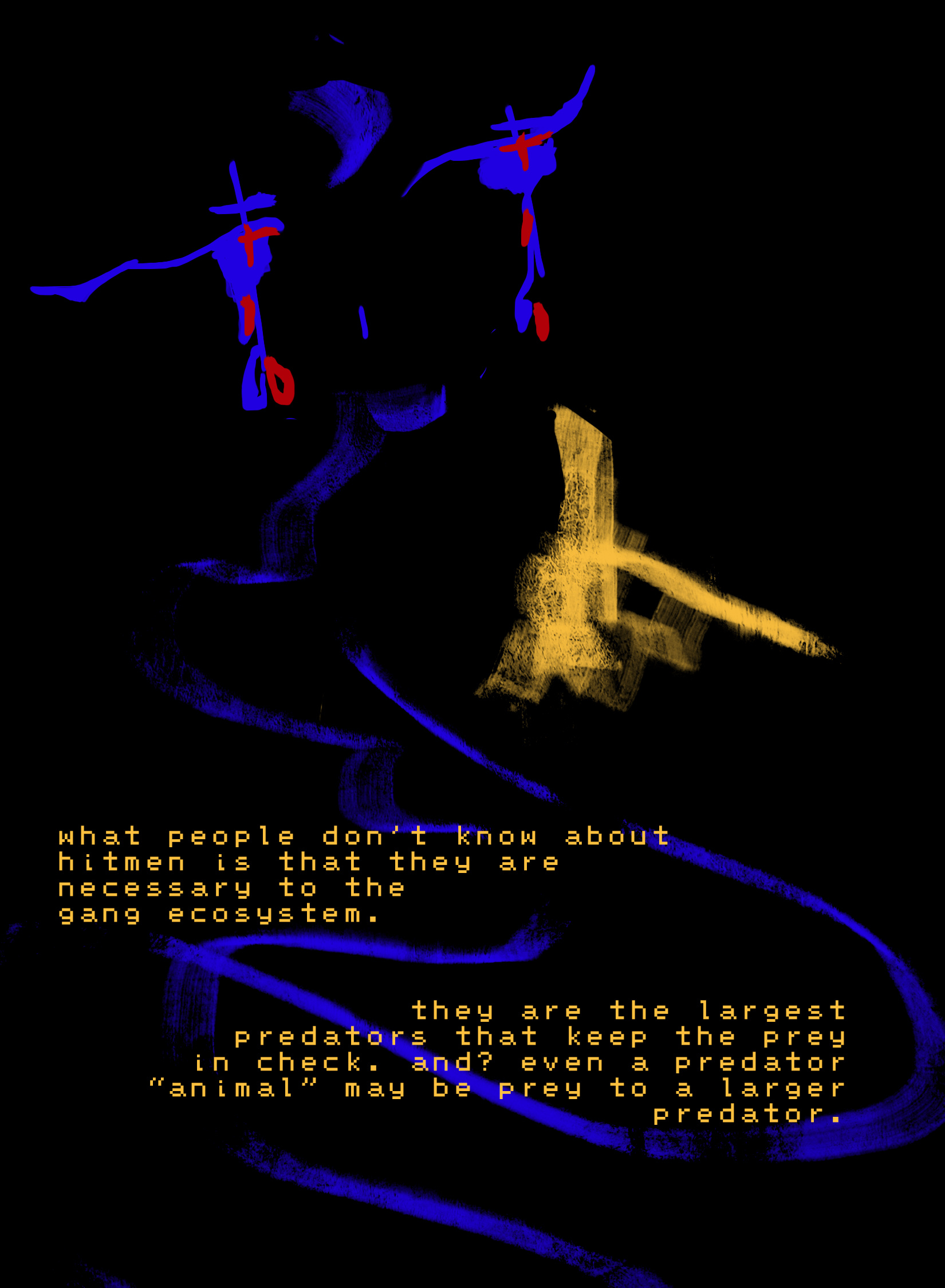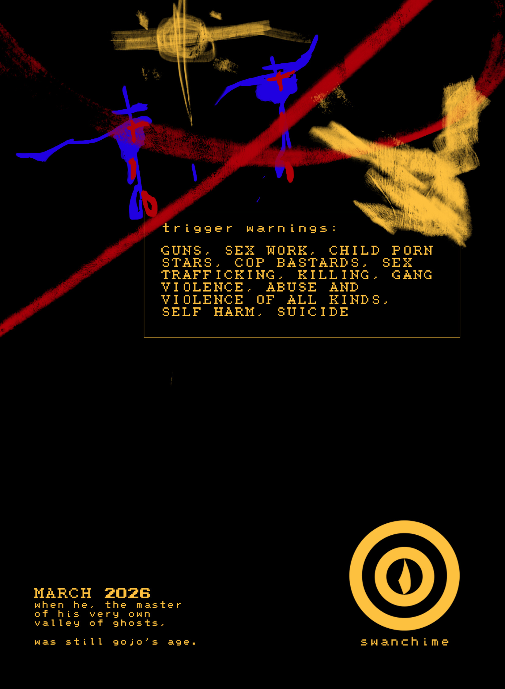 TW: GUNS, LOUD SFX, SEX WORK, CHILD PORN STARS, COP BASTARDS, SEX TRAFFICKING, KILLING, GANG VIOLENCE, ABUSE AND VIOLENCE OF ALL KINDS, SELF HARM, SUICIDE